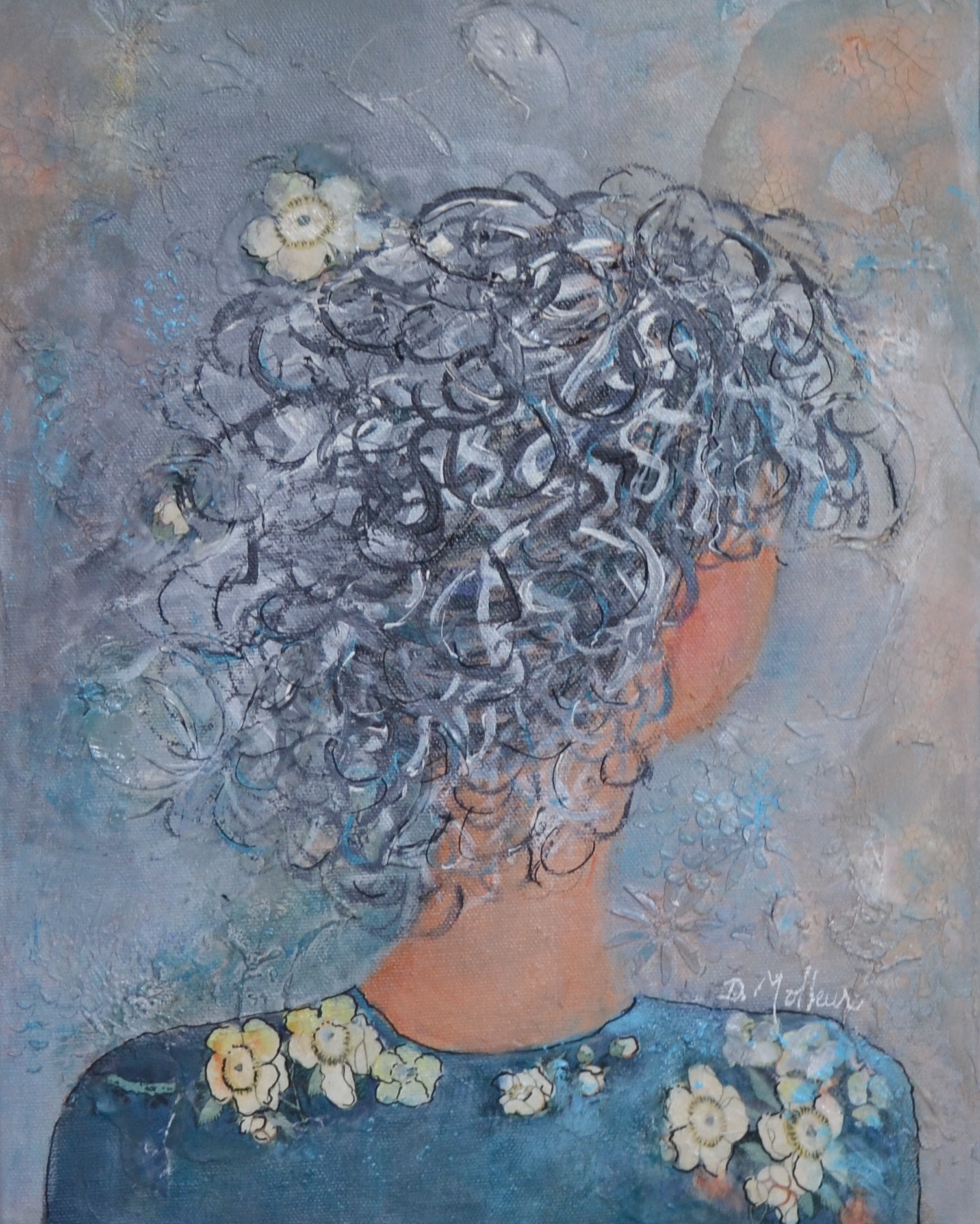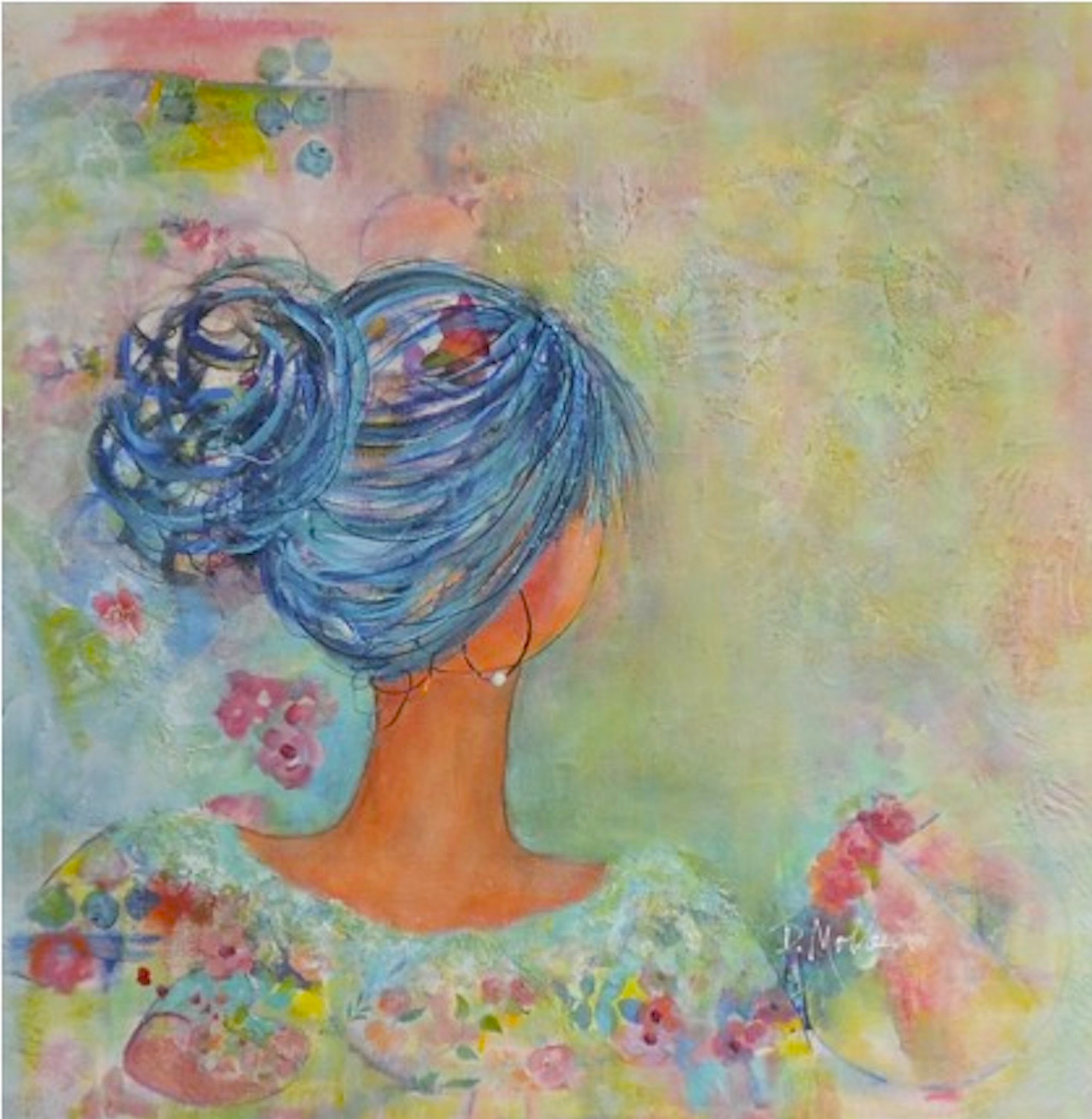 Ma démarche est de créer des femmes qui dégagent douceur et mystère. En les peignant de dos, celui ou celle qui les regarde, s’imagine cette femme avec leur propre émotion.